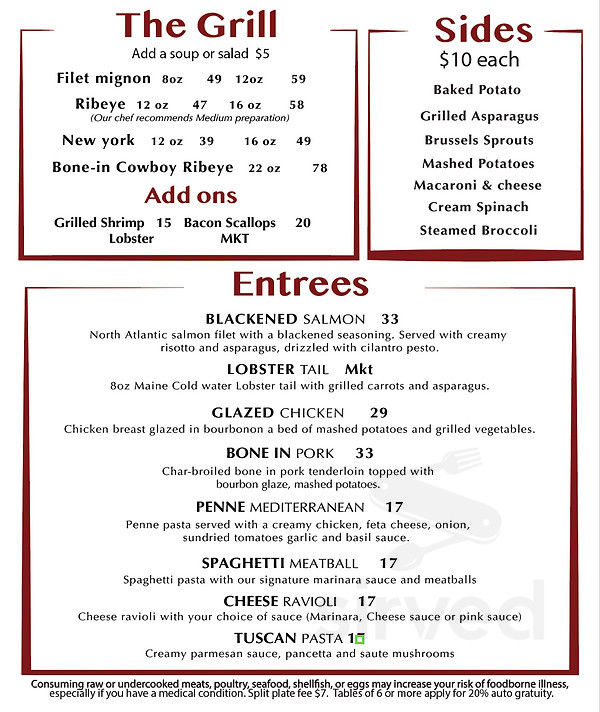 1718 Steak House Stone Oak Menu In San Antonio Texas Usa